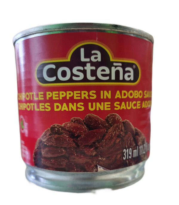Les piments chipotle en sauce adobo La Costeña sont des piments jalapeños fumés, conservés dans une sauce adobo épicée et légèrement vinaigrée. Cette préparation offre une saveur fumée prononcée et une intensité relevée, adaptée à de nombreuses utilisations culinaires.